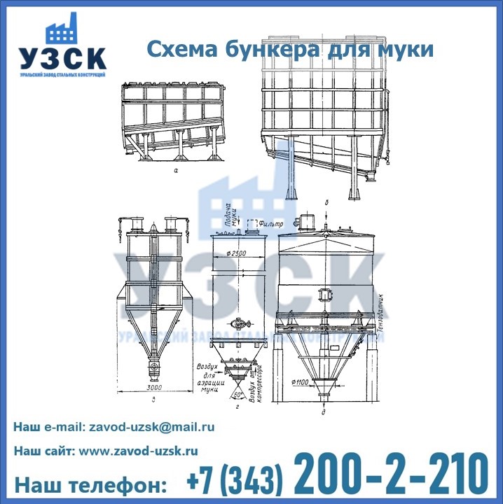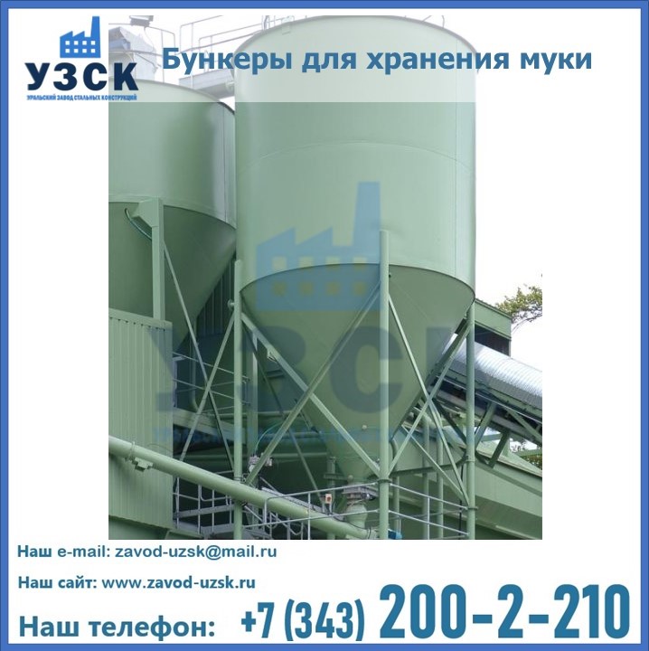 Завод «УЗСК» в Астрахани проектирует, производит и поставляет целевое оборудование, в том числе, бункеры для хранения муки и прочих сыпучих материалов.