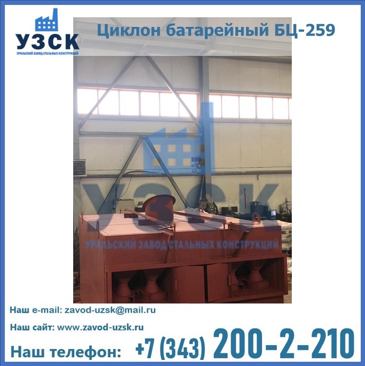 Приобрести качественное оборудование, в том числе, циклоны БЦ-259, можно в компании УЗСК в Астрахани. Мы предлагаем долговечную и надежную продукцию по приемлемой цене. Заказать и купить циклоны или другие изделия высокого качества можно через сайт Уральского Завода Стальных Конструкций, или позвонив по указанному в разделе «Контакты» телефону.