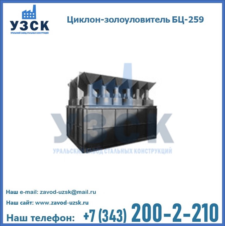 Если вы планируете купить то или иное оборудование, например, циклоны-золоуловители БЦ-259, то рекомендуем заказать данный товар на сайте УЗСК. Мы производим и реализуем продукцию высокого качества по приемлемой цене. Эксперты Уральского Завода Стальных Конструкций в Астрахани проконсультируют вас по всем вопросам, помогут сделать выбор и оформить заказ без лишних временных затрат. Мы гарантируем соответствие нашей продукции всем требованиям ГОСТ и ТУ, а также износостойкость и высокую производительность предлагаемого оборудования. Если требуется изготовить циклон нестандартных размеров, то такой вариант выполнения заказа тоже предусмотрен, так как предприятие имеет собственные производственные площади и надежных поставщиков. На все поставляемое или производимое оборудование имеются чертежи и прочая техническая документация. Заказать и купить циклоны или прочее оборудование высокого качества и по доступной цене можно через наш сайт или по указанному в разделе «Контакты» телефону.