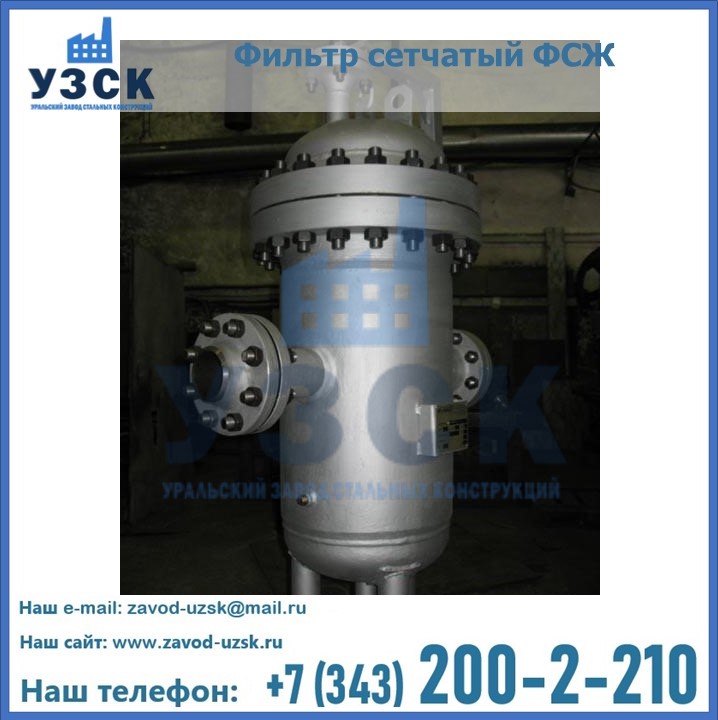Очистку перекачиваемых жидкостей на предприятиях нефтяной, пищевой, горнорудной, фармацевтической и других отраслей промышленности эффективно выполнять с помощью жидкостного сетчатого фильтра — емкостное оборудование цилиндрической формы со съемной крышкой и элементом фильтрации внутри. Оснащенные им всасывающие линии насосных станций и установок защищены от проникновения твердых частиц в функциональные узлы гидравлической системы. Оборудование служит для перекачивания токсичных, агрессивных и иных эмульсий, суспензий, жидкостей. Купить фильтр сетчатый жидкостный ФСЖ в Астрахани с гарантией производителя предлагает «Уральский завод стальных конструкций». Мы выполняем проектирование и изготовление ФСЖ по индивидуальным требованиям (климатическая зона, транспортируемая жидкость).